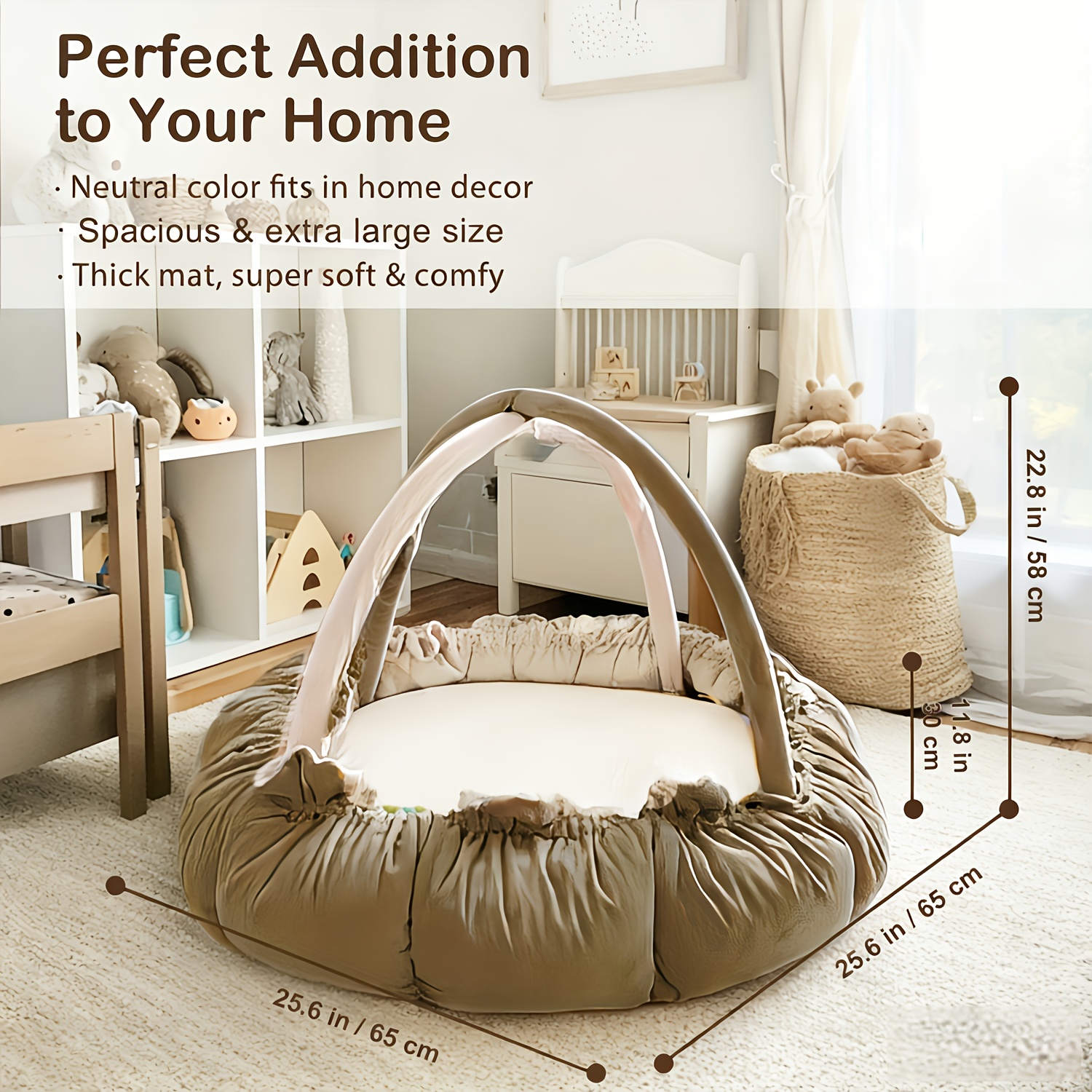 5-in-1 Thick & Plush Baby Gym, Baby Mats for Floor, Tummy Time Mat, Cat Bed, Dog Bed, Convertible Stage-Based Developmental From Baby to Toddler, Ball Pit, Pet Cushion Cloudico