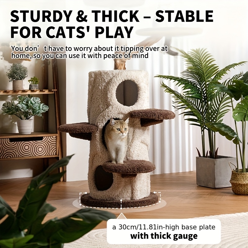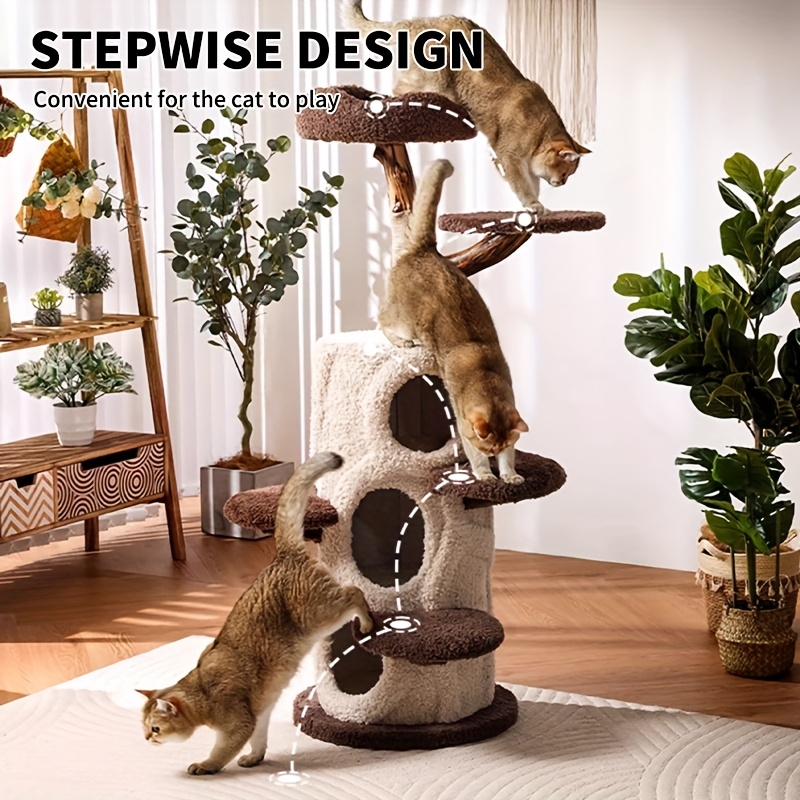 A Cat Tree Structure Featuring Three Comfortable Hideaways - a Stylish Wooden Condo Perfect for Halloween, Designed for Multiple Adult Cats with Spacious Levels, Soft Perches, Platforms, And Scratching Posts