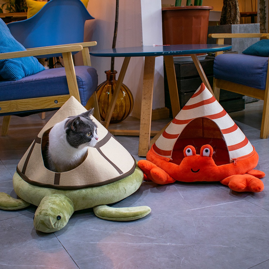 All-season Enclosed Windproof Cat House, Detachable Cat and Dog Bed, Warm Pet Nest, Creative Turtle and Hermit Crab-style Cat Bed