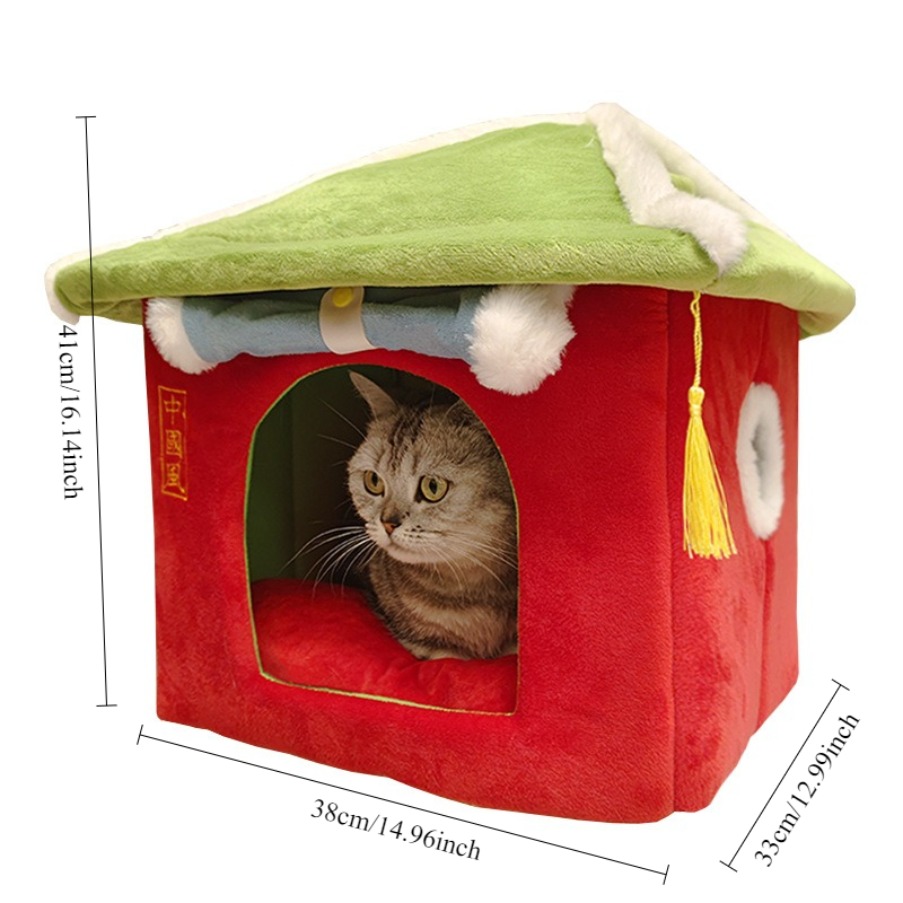 Chinese Ancient Style Cat House | Fully Enclosed, Removable and Washable, Winter Warmth, Suitable for Cats up to 16.53 lbs