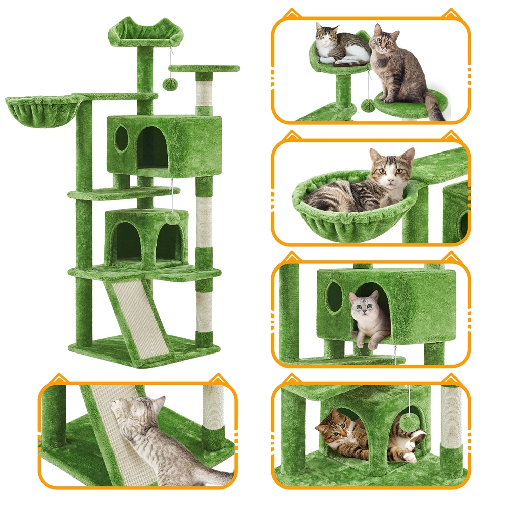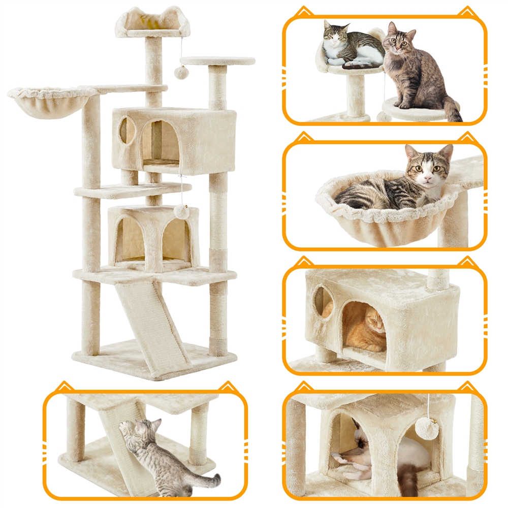 Costoffs 57''H Cat Tree Perfect Gift for Cats Condo Kitten Tree Tower w\u002F 2 Condos & Dangling Ball & Round Platform & Ladder Multilevel Indoor Cat Tree Tower for Kittens\u002FSmall Cats Christmas Gift