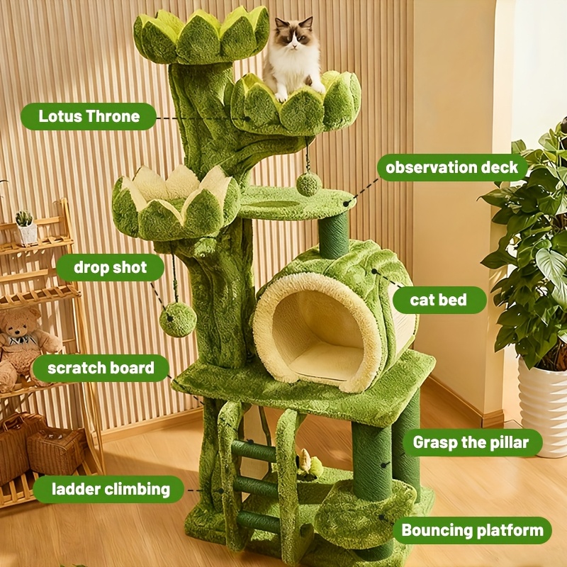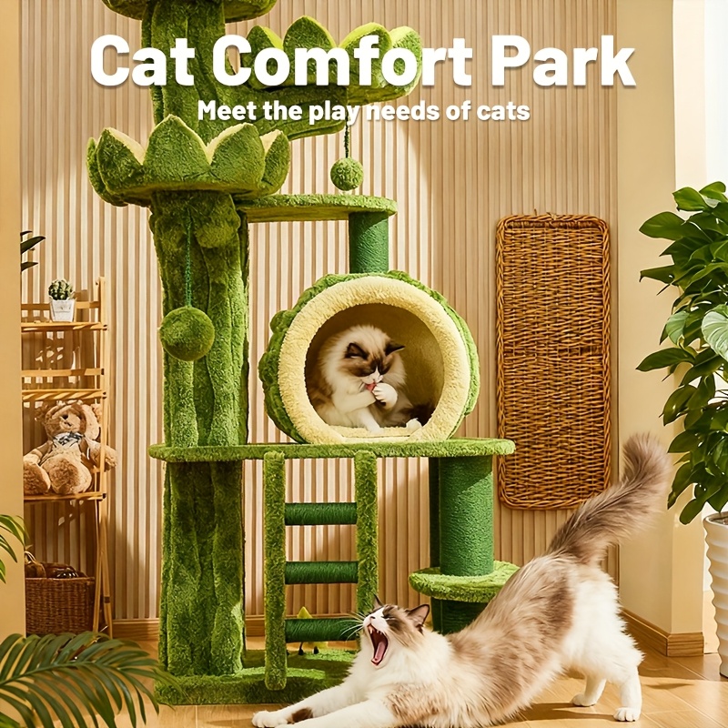 3-tier Cat Tree Activity Tower Condo Furniture with Plush Cushion Cozy Rest Dangling Ball Sisal Scratching Post for Indoor Cats