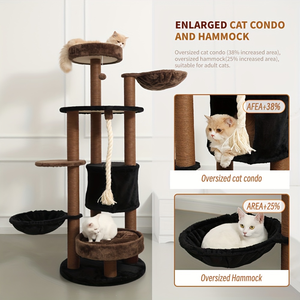 Large Cat Tower with Luxurious Large Platform for Large Cats, with Soft Hammock, Multi-level Flower Tower, Sisal Scratching Post And Toy Ball, Sturdy Indoor Playhouse